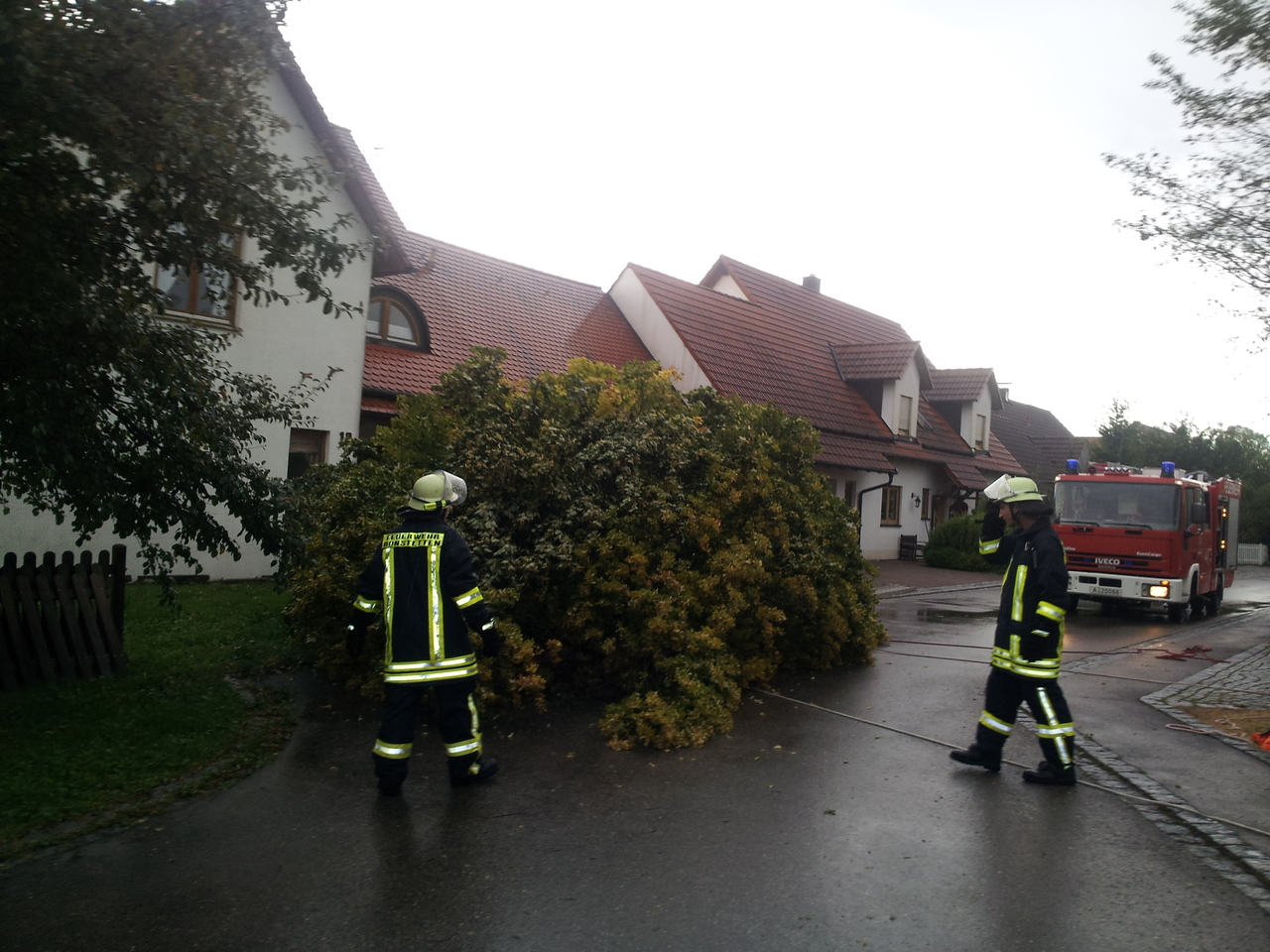 In Folge des schweren Unwetters während des Festumzuges wurde die Feuerwehr Bonstetten gegne 14:38 Uhr alarmiert. Aufgrund der hohen Anzahl an Pferdegespanne und Besucher der 950-Jahr-Feier wurden die Feuerwehren aus Adelsried und Welden zur Unterstützung angefordert.