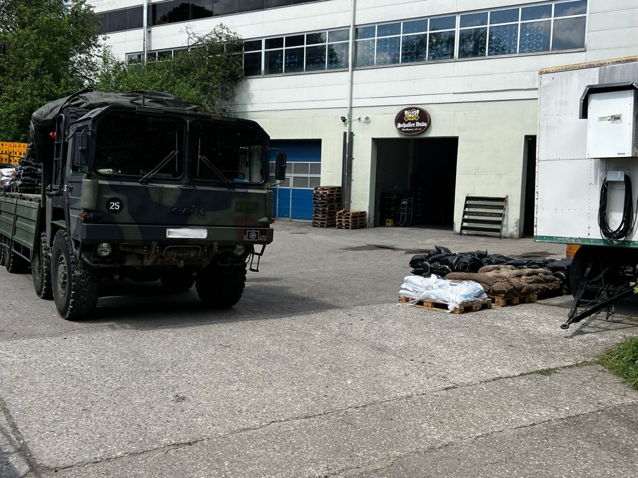 Es wurden noch einige organisatorische Sachen geklärt. Zudem ging ein Teil des Sandsackbestandes durch die Bundeswehr weiter in aktuell betroffene Gebiete. Dieser wurde von uns verladen. Zudem wurden Vorbereitungen getroffen, um das Füllen der Sandsäcke wieder hochzufahren, wenn der Bedarf besteht.