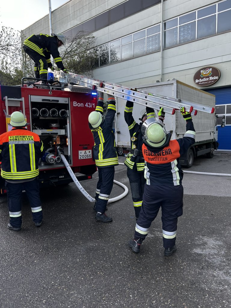 Am vergangenen Donnerstag traten die Kommandanten Riedesser und Haslinger mit 20 Feuerwehrfrauen und -männern zur Inspektion der FF Bonstetten an. 1. Kommandant Deil konnte krankheitsbedingt nicht teilnehmen. Nach der Prüfung der Dokumente und der Gerätschaften stellte die aktive Wehr in einem simulierten Einsatz ihre Einsatzfähigkeit zur Prüfung. Im Jugendtreff wurde bei einem Brand eine Person über die Steckleiter gerettet und der Brand bekämpft.