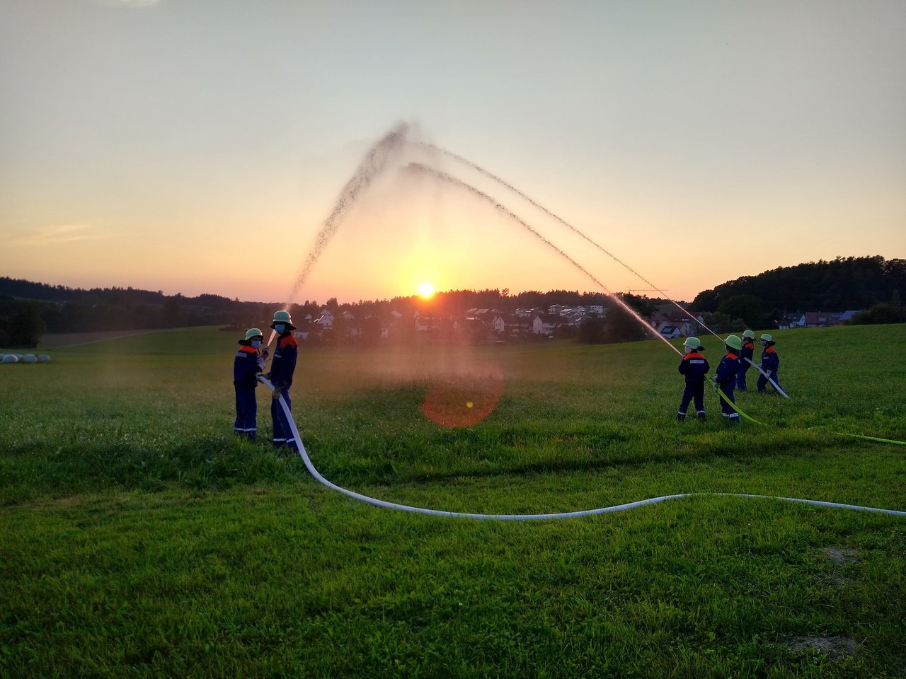 Einnen wunderschönen Sonnenuntergang im Hintergrund von Bonstetten konnte die Jugendfeuerwehr diese Woche bei der Übung Ihres Löschaufbaus genießen.