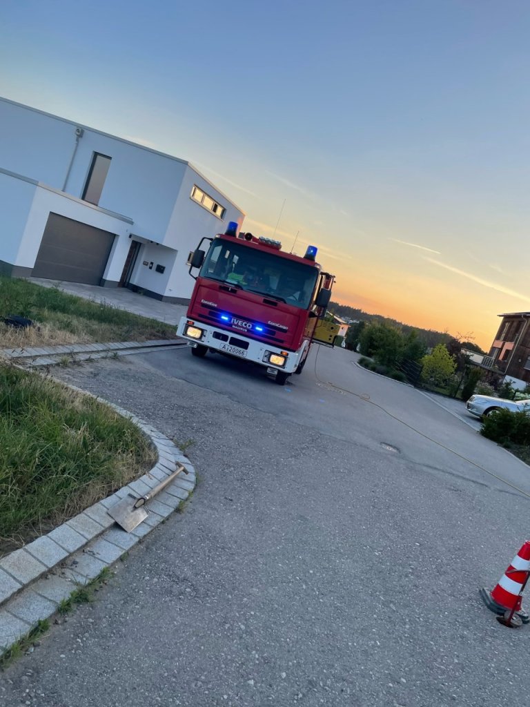 In einem Einfamilienhaus lief aufgrund eines technischen Defekts das erste Stockwerk voller Wasser. Die Freiwillige Feuerwehr war mit zwei Fahrzeugen im Einsatz, um das Wasser abzusperren und das Wasser wieder zu beseitigen.