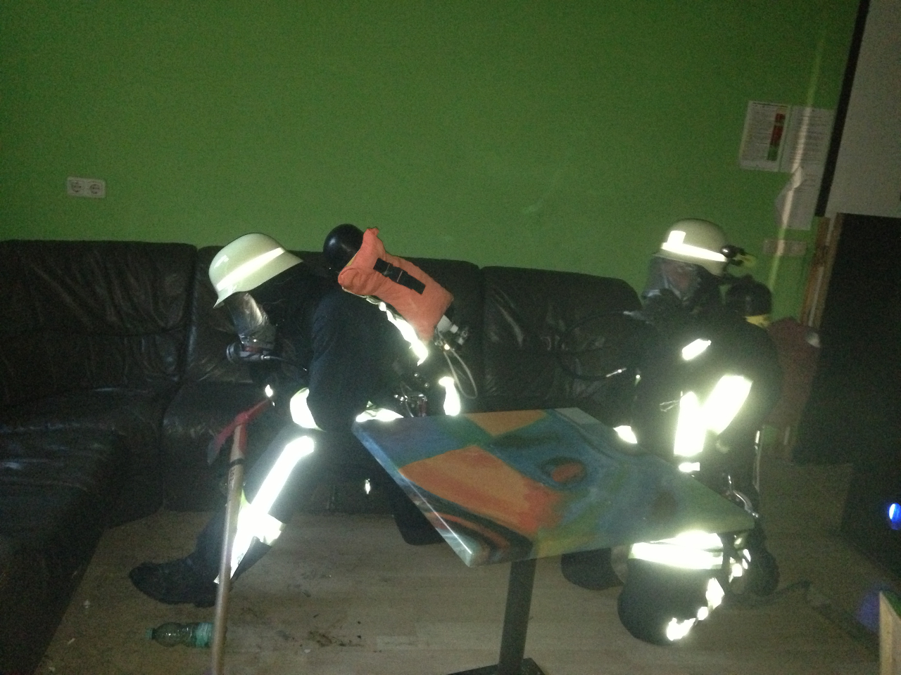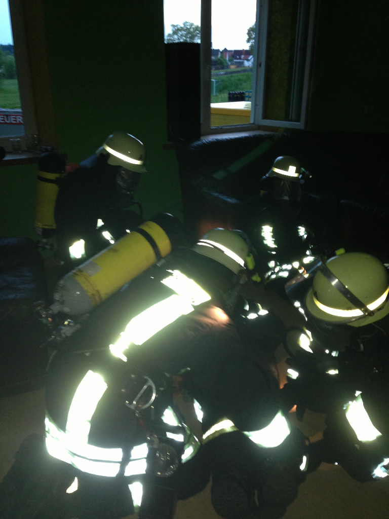 Am 15. Mai trafen sich die 18 Atemschutzgeräteträger zur gemeinsamen Übung um das Vorgehen beim Absuchen eines verrauchten Raumes und die Rettung einer Person zu üben.