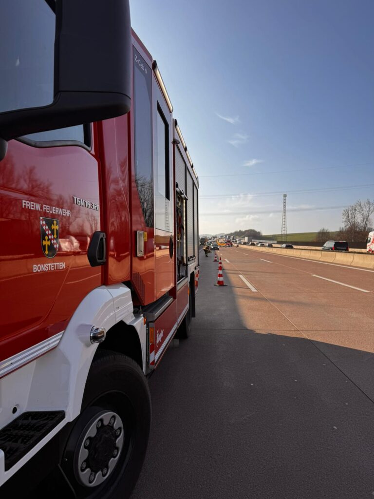 Zu einem Einsatz mit eingeklemmten Personen wurden wir heute auf die Autobahn alarmiert. Die Erstmeldung bestätigte sich glücklicherweise nicht, allerdings erstreckte sich die Einsatzstelle über mehrere 100 Meter. Wir sicherten die Einsatzstelle ab und konnten nach einer Stunde wieder einrücken.